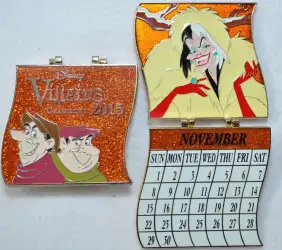 Cruella DeVil (Surprise Release) is a Limited Edition (LE) 400 pin from the Villains Calendar pin series. It was originally released on , 2015 and was available from Disney Studio Store Hollywood / Soda Fountain .