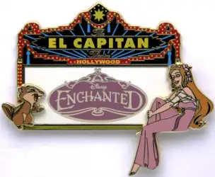 Enchanted is a Limited Edition (LE) 300 pin from the El Capitan Marquee Series pin series. It was originally released on , 2007 and was available from Disney Studio Store Hollywood / Soda Fountain .