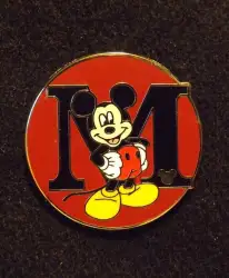 M for Mickey Mouse is a Limited Release pin from the 2009 Hidden Mickey - Alphabet pin series. It was originally released on , 2008 and was available from Walt Disney World .