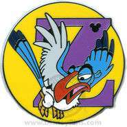 Z for Zazu is a Limited Release pin from the 2009 Hidden Mickey - Alphabet pin series. It was originally released on , 2008 and was available from Walt Disney World .