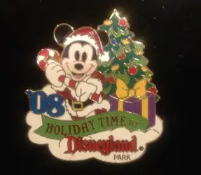 2008 - Santa Mickey is a Limited Edition (LE) pin from the Holiday Time Tour at the Disneyland Resort pin series. It was originally released on , 2008 and was available from Disneyland Resort .