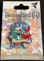 60 Years of Holidays is a Limited Edition (LE) 3000 pin from the Disneyland 60th Decades Collection pin series. It was originally released on , 2015 and was available from Disneyland Resort .