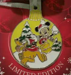 Hilton Head Island Resort - Mickey & Pluto Ornament is a Limited Edition (LE) 500 pin from the Resort Holiday Collection 2018: Hinged Ornaments pin series. It was originally released on , 2018 and was available from Walt Disney World .