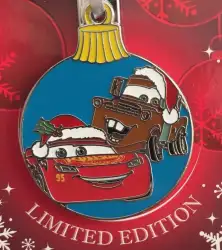 Art of Animation Resort - Lightning McQueen & Mater Ornament is a Limited Edition (LE) 1500 pin from the Resort Holiday Collection 2018: Hinged Ornaments pin series. It was originally released on , 2018 and was available from Walt Disney World .
