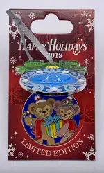 Aulani Resort & Spa - Duffy & Shellie Mae Ornament is a Limited Edition (LE) 1250 pin from the Resort Holiday Collection 2018: Hinged Ornaments pin series. It was originally released on , 2018 and was available from Multiple Sources (WDW, DLR, etc.).
