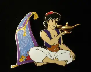 Aladdin is a Limited Edition (LE) 200 pin from the Aladdin 25th Anniversary - Box Set of 6 pins pin series. It was originally released on , 2017 and was available from Multiple Sources (WDW, DLR, etc.).