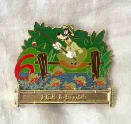 6 Fish-A-Biting is a Limited Edition (LE) 250 pin from the Jingle Cruise - 12 Days of Christmas Mystery Collection pin series. It was originally released on , 2016 and was available from Walt Disney Imagineering .