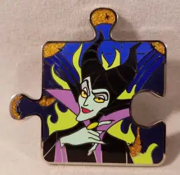 Maleficent with Flames (CHASER) is a Limited Edition (LE) 600 pin from the Character Connection Mystery Collection - Sleeping Beauty Puzzle pin series. It was originally released on , 2016 and was available from Multiple Sources (WDW, DLR, etc.).