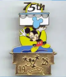 Mickey's 75th Birthday Pin is a Limited Edition (LE) 1500 pin from the Rescue Captain Mickey pin series. It was originally released on , 2002 and was available from Disney Cruise Line .