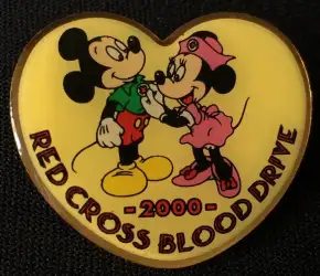 Red Cross Blood Drive Mickey and Minnie Mouse is a Limited Edition (LE) pin from the Blood Drive pin series. It was originally released in January, 2000 and was available from Tokyo Disneyland Resort .