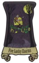 Five Lucky Charms is a Limited Release pin from the Haunted Mansion Holiday 2018: Mystery Collection pin series. It was originally released on , 2018 and was available from Disneyland Resort .