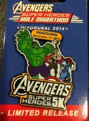 Inaugural 2014 5K- Hulk, Thor & Captain America is a Limited Release pin from the runDisney: Avengers Super Heroes Half Marathon Weekend pin series. It was originally released on , 2014 and was available from Disneyland Resort .