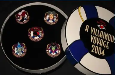 Welcome Gift is a Limited Edition (LE) 500 pin from the A Villainous Pin Voyage - Welcome Gift pin series. It was originally released on , 2004 and was available from Disney Cruise Line .