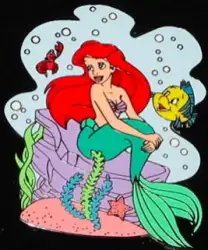 Pin features Ariel , Flounder and Sebastian from The Little Mermaid