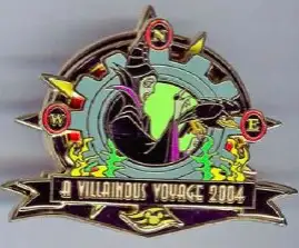 Maleficent Navigational Spinner is a Limited Edition (LE) 750 pin from the A Villainous Pin Voyage pin series. It was originally released on , 2004 and was available from Disney Cruise Line .