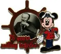 Mickey's Birthday Pin is a Limited Edition (LE) 750 pin from the A Villainous Pin Voyage pin series. It was originally released on , 2004 and was available from Disney Cruise Line .
