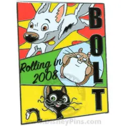 Countdown to Disney's Bolt is a Limited Edition (LE) 2500 pin from the Bolt pin series. It was originally released on , 2008 and was available from Multiple Sources (WDW, DLR, etc.).