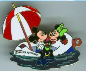 Mickey and Minnie's Boat of Bliss is a Limited Edition (LE) 500 pin from the Stitch's High Sea Adventure pin series. It was originally released on , 2005 and was available from Disney Cruise Line .