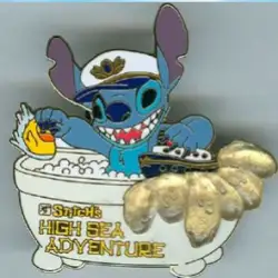 Stitch In A Tub is a Limited Edition (LE) 750 pin from the Stitch's High Sea Adventure pin series. It was originally released on , 2005 and was available from Disney Cruise Line .