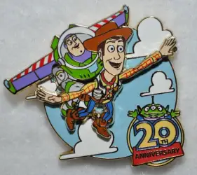 Woody and Buzz is a Limited Edition (LE) 3000 pin from the Toy Story 20th Anniversary pin series. It was originally released on , 2015 and was available from Multiple Sources (WDW, DLR, etc.).