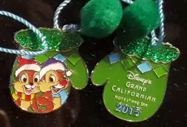 Grand Californian Hotel & Spa - Chip & Dale Mittens is a Limited Edition (LE) 1000 pin from the Resort Holiday Collection 2015: Mittens pin series. It was originally released on , 2015 and was available from Disneyland Resort .