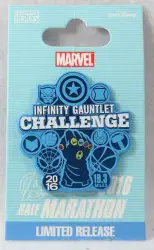 Infinity Gauntlet Challenge 2016 is a Limited Release pin from the runDisney: Avengers Super Heroes Half Marathon Weekend pin series. It was originally released on , 2016 and was available from Disneyland Resort .