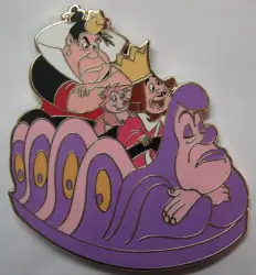 Queen and King is a Limited Edition (LE) 250 pin from the Alice in Wonderland characters riding Caterpiller Ride Vehicles pin series. It was originally released on , 2013 and was available from Walt Disney Imagineering .