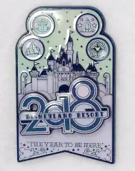 Sleeping Beauty Castle Logo - The Year to Be Here is an Open Edition pin from the 2018 Dated Year Pins pin series. It was originally released on , 2017 and was available from Disneyland Resort .