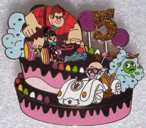 Ralph, Vanellope, and King Candy is a Limited Edition (LE) 250 pin from the Wreck-it Ralph 5th Anniversary pin series. It was originally released on , 2017 and was available from Walt Disney Imagineering .