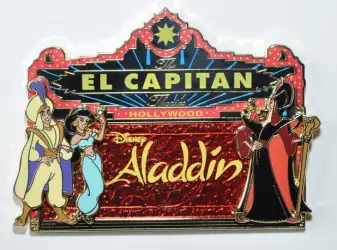 Aladdin #2 is a Limited Edition (LE) 300 pin from the El Capitan Marquee Series pin series. It was originally released on , 2016 and was available from Disney Studio Store Hollywood / Soda Fountain .