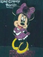 February is an Open Edition pin from the Minnie Mouse Birthstone Jeweled Bow Collection pin series. It was originally released on , 2000 and was available from Multiple Sources (WDW, DLR, etc.).