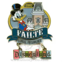 Scrooge McDuck is a Limited Edition (LE) 1000 pin from the Welcome Annual Passholders 2007 pin series. It was originally released on , 2007 and was available from Disneyland Resort .