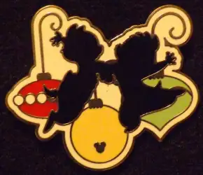 Chip & Dale is an Open Edition pin from the 2008 Hidden Mickey - Christmas Silhouette pin series. It was originally released in November, 2008 and was available from Disneyland Resort .