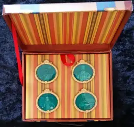 Hitchhiking Ghosts Suitcase Boxed Set - Full Set is a Limited Edition (LE) 300 4-pin set from the Haunted Mansion 45th Anniversary pin series. It was originally released on , 2014 and was available from Disneyland Resort .