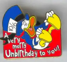 Donald Duck is an Open Edition pin from the DLR Cast Lanyard 2.5 - Merry Unbirthday pin series. It was originally released in November, 2004 and was available from Disneyland Resort .