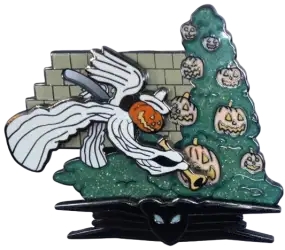 Ice Angels with Pumpkin Hill is a Limited Edition (LE) 3500 pin from the Haunted Mansion Holiday: 13 Treats in 5 Frightful Weeks Series pin series. It was originally released in November, 2003 and was available from Disneyland Resort .