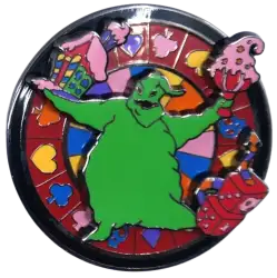 Oogie Boogie Roulette Wheel is a Limited Edition (LE) 3500 pin from the Haunted Mansion Holiday: 13 Treats in 5 Frightful Weeks Series pin series. It was originally released in November, 2003 and was available from Disneyland Resort .