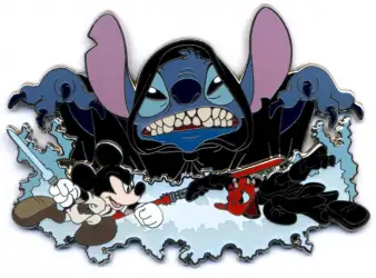 Pin features Donald Duck , Mickey Mouse , Stitch , Darth Maul and Emperor Palpatine from Lilo and Stitch