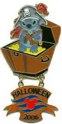Stitch Halloween Pirate is a Limited Edition (LE) 500 pin from the Cruisin' Through Time pin series. It was originally released on , 2006 and was available from Disney Cruise Line .