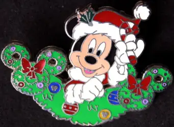 Santa Mickey with Candy Cane is an Open Edition pin in the Holiday Pin Collection Booster Set - Sleeping Beauty Castle 4-pin set. It was originally released on , 2008 and was available from Disneyland Resort .