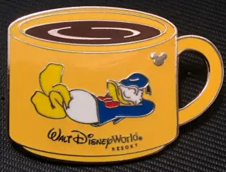 Donald Duck is a Limited Release pin from the Cast Lanyard Collection IV - Coffee Mugs pin series. It was originally released on , 2005 and was available from Walt Disney World .