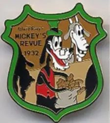 Mickey's Revue 1932 is a Limited Edition (LE) 2000 pin from the Marimo Craft (マリモクラフト) - History of Art Series pin series. It was originally released on , 2002 and was available from an Officially Licensed Disney trading pin vendor (see description for more information).