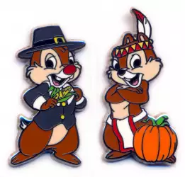 Chip & Dale is an Open Edition pin from the Thanksgiving pin series. It was originally released on , 2014 and was available from Multiple Sources (WDW, DLR, etc.).