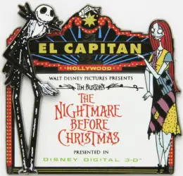 The Nightmare Before Christmas #3 Jack and Sally is a Limited Edition (LE) 300 pin from the El Capitan Marquee Series pin series. It was originally released on , 2007 and was available from Disney Studio Store Hollywood / Soda Fountain .