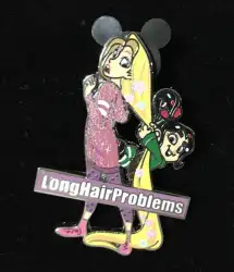 Rapunzel & Vanellope - Long Hair Problems is an Open Edition pin from the Ralph Breaks the Internet Mystery Collection pin series. It was originally released on , 2018 and was available from Multiple Sources (WDW, DLR, etc.).