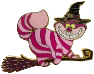 Cheshire Cat is a Limited Edition (LE) 300 pin from the Witch Cats on Brooms Collection pin series. It was originally released on , 2018 and was available from Disney Studio Store Hollywood / Soda Fountain .