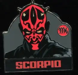 Darth Maul is a Limited Release pin from the Star Wars Zodiac pin series. It was originally released on , 2013 and was available from Multiple Sources (WDW, DLR, etc.).