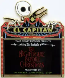 The Nightmare Before Christmas #5 Jack Skellington is a Limited Edition (LE) 300 pin from the El Capitan Marquee Series pin series. It was originally released on , 2008 and was available from Disney Studio Store Hollywood / Soda Fountain .