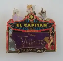 Villains Marquee is a Limited Edition (LE) 300 pin from the Villain Pin Trading Event pin series. It was originally released on , 2017 and was available from Disney Studio Store Hollywood / Soda Fountain .