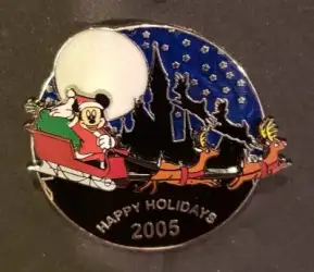Happy Holidays 2005 - Santa Mickey is a Limited Edition (LE) pin from the Disney Visa Card pin series. It was originally released on , 2005 and was available from Multiple Sources (WDW, DLR, etc.).